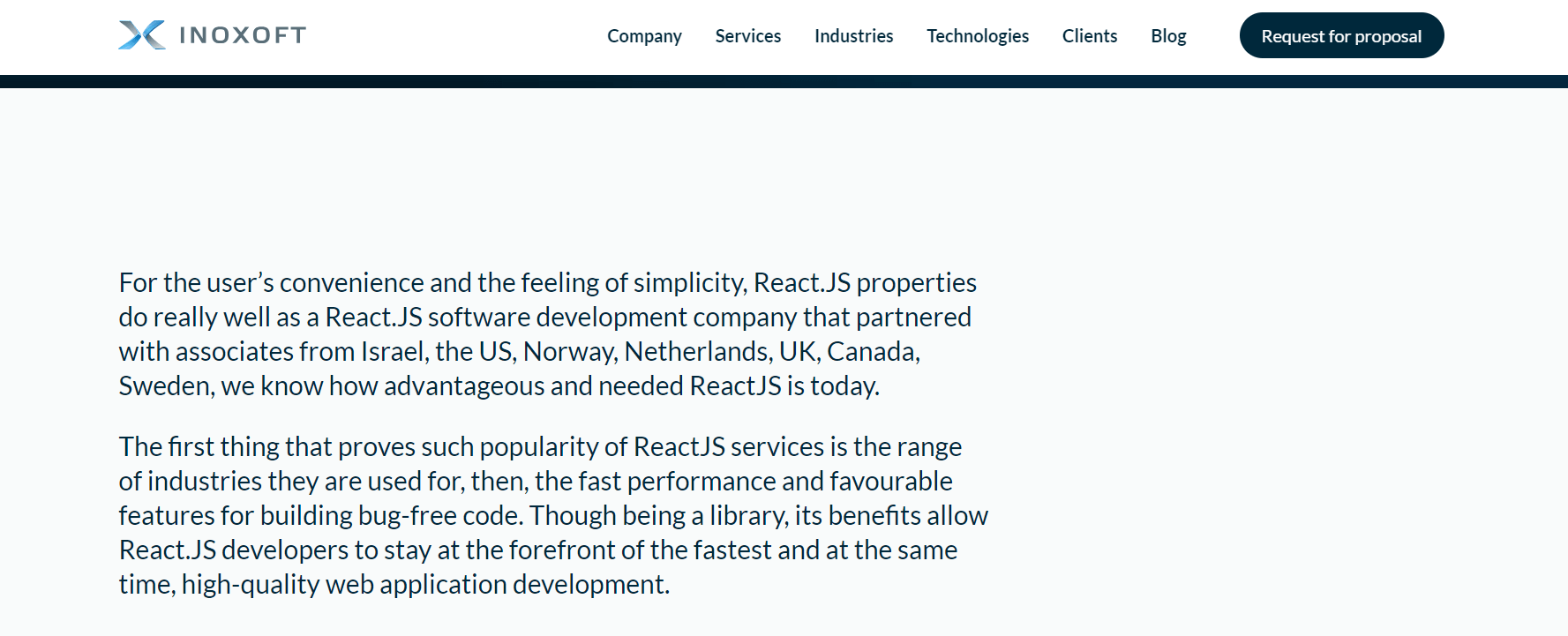 Inoxoft is an international software development company. It was founded in 2014. It specializes in the world’s best software technologies which are Flutter, React Native, Python, .Net, React and Node.js.